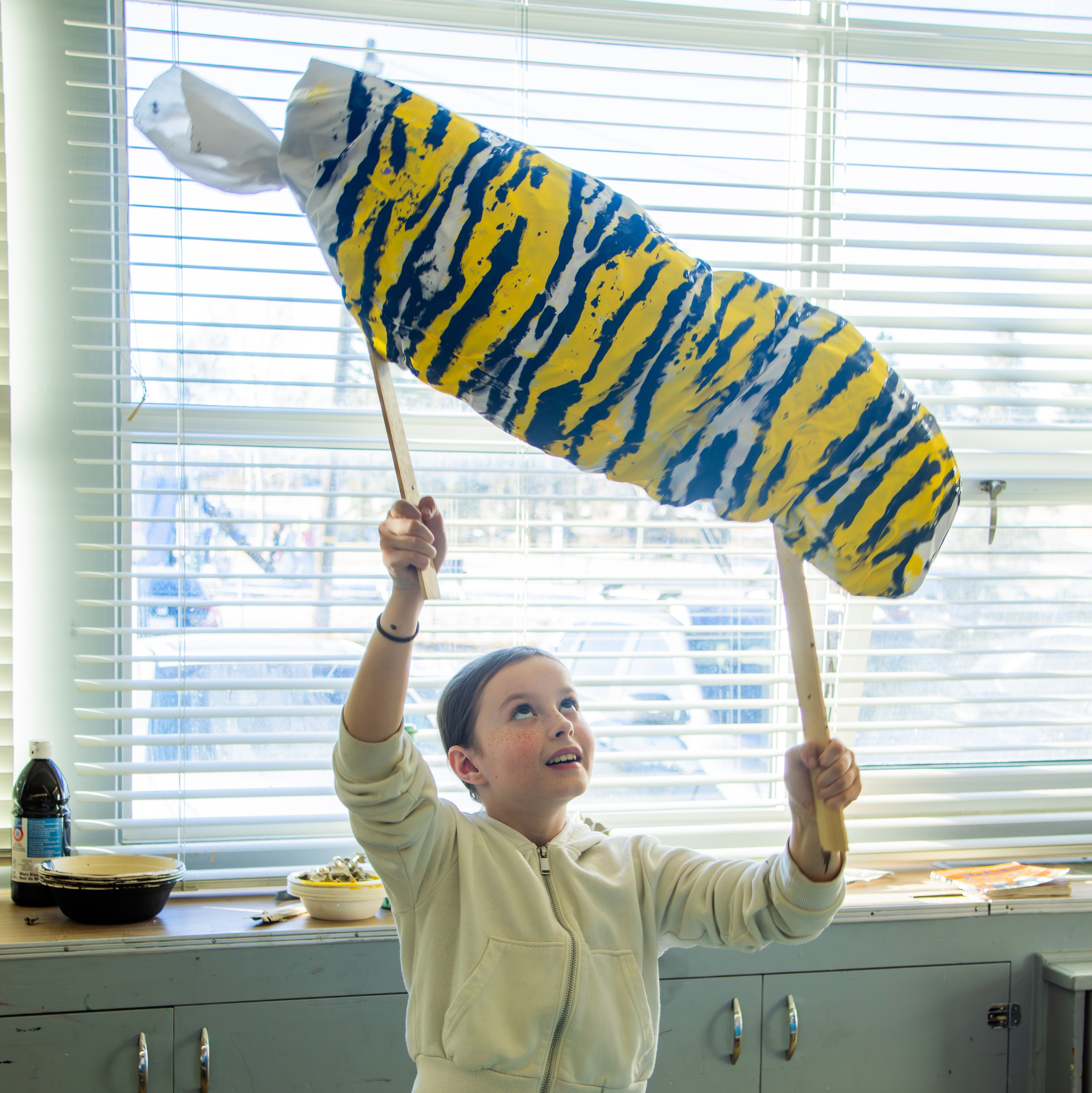“This year, we wanted the butterflies and caterpillars to serve not only as decorations, but also as puppets,” Dale explains, adding she spent several weeks preparing for the project.
